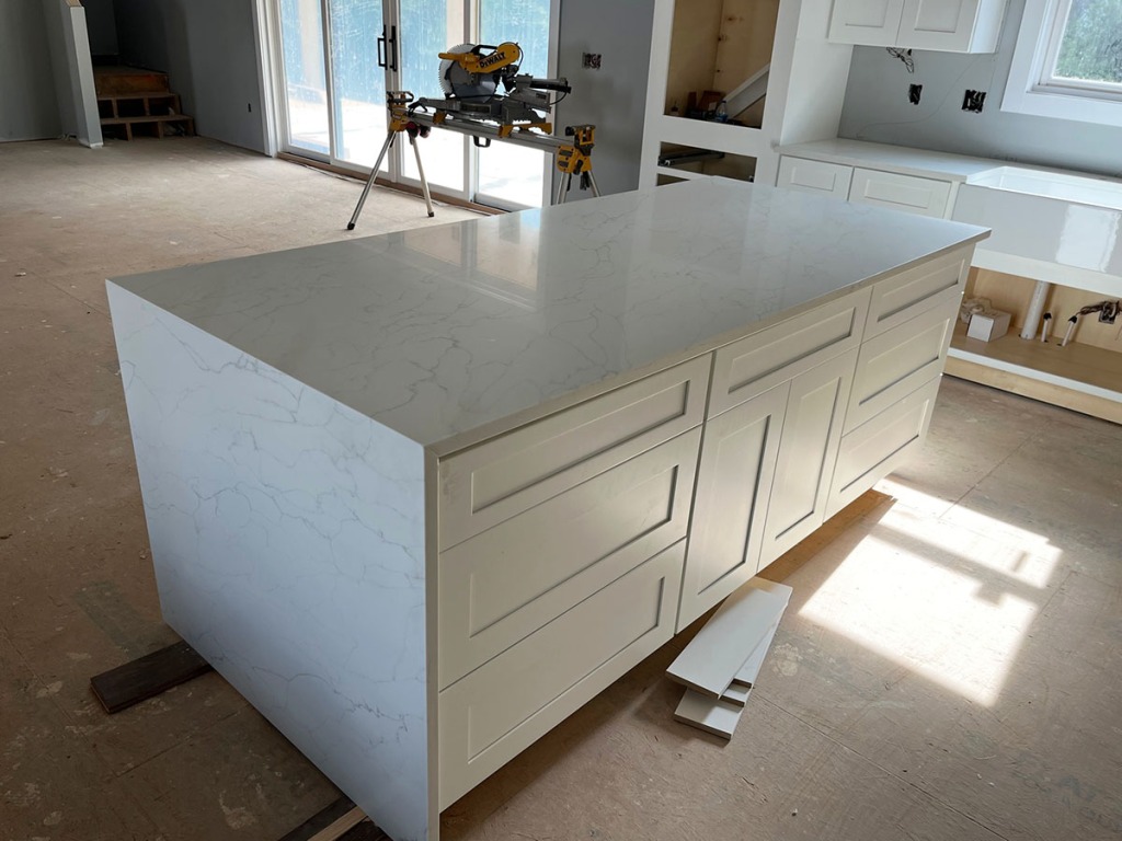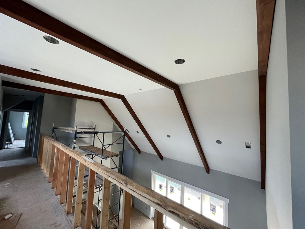 The interior construction progress looks fabulous. It includes installation of cabinets and countertops in the kitchen, pantry, laundry and bedrooms. Bath tile is on site to start installation in the next couple of weeks.. Beautiful 5” hardwoods are complete on two floors with a matching 7” vinyl flooring for the lower-level basement rooms. The electrical subcontractor is trimming out and installing fixtures. The plumbing subcontractor and HVAC subcontractor will be on site for the next few weeks.